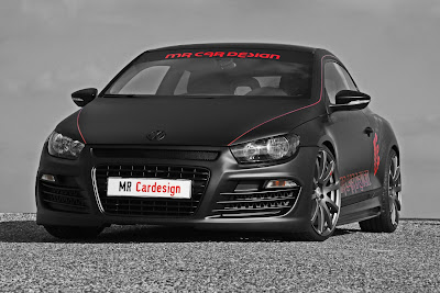 MR Car Design hand, looks standard Volkswagen Scirocco successfully reformed into an aggressive-looking European car and then was given the title 'Black Rocco'. in order to support the theme of this modification, the German tuner famous attaches package Rieger body kit made in the body, consisting of a new design front fascia, side skirts, a new rear bumper that includes a diffuser, and covered with laburan sleek matte black paint.